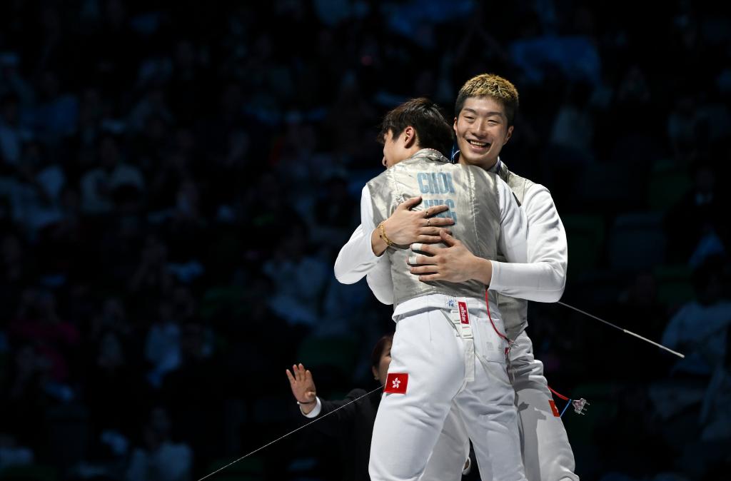 11月19日,队选手蔡俊彦(左)和队友张家朗正在角逐后相拥庆贺夺冠。记者 胡虎虎 摄澳门队同样送来汗青性逾越。郭建恒、方文浩、郑沘珞正在白手道须眉业余组集体型角逐中一举夺魁,为澳门博得首枚全运会群众赛事金牌。“这是我的最初一届全运会,能以冠军收官非常。”郭建恒说,将来将持续深耕澳门白手道事业,为青年选手铺搭桥。